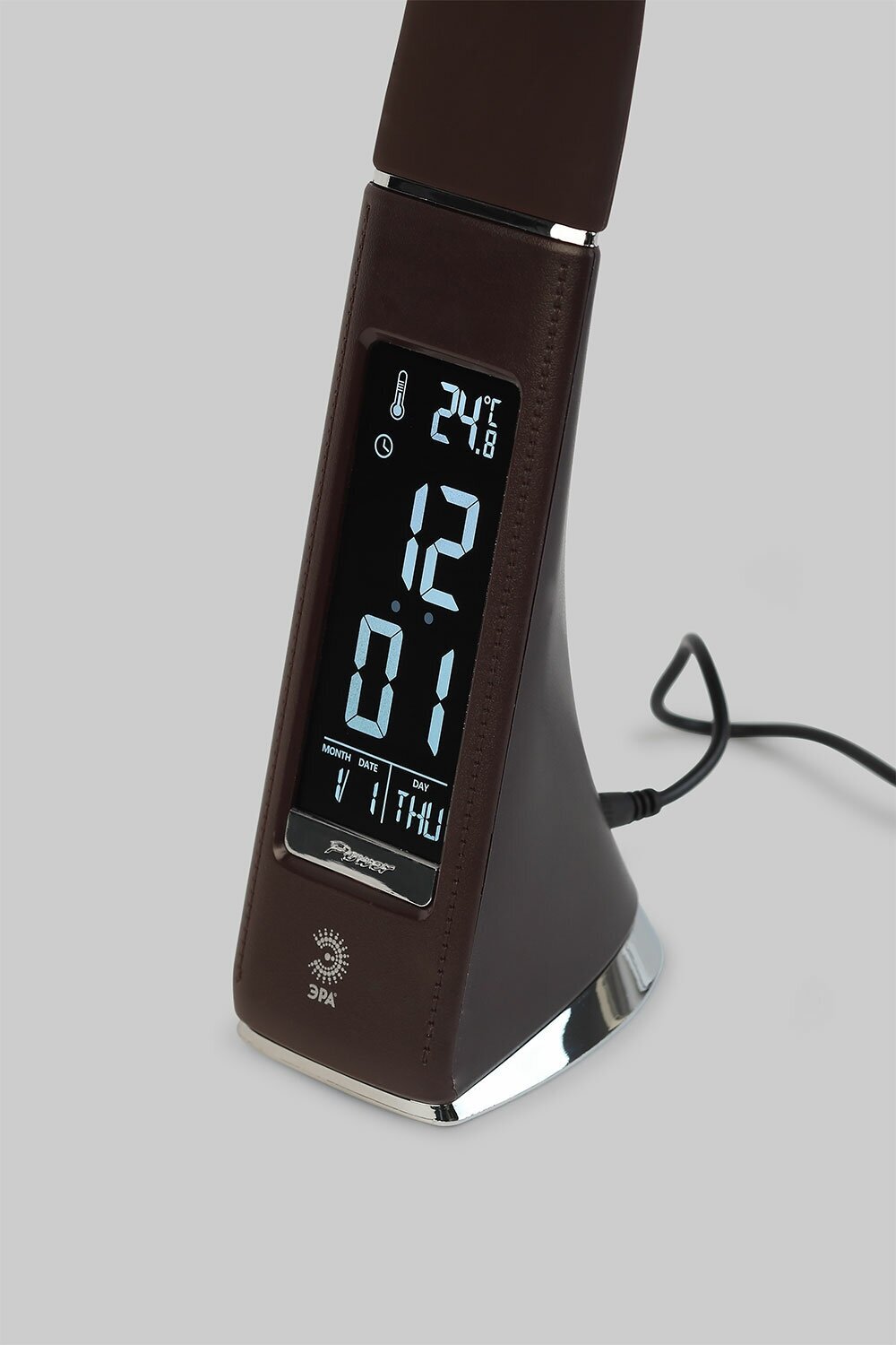 ЭРА NLED-461 св-к настольный св/д 7W 4K сенсор. диммер, дисплей (часы, термом), корич. под кожу 7433