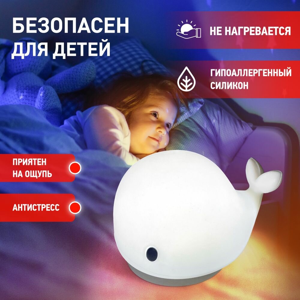 ЭРА ночник светодиодн. детский мягкий 1W NLED-411-1W-W белый КИТ, сенсор, RGB (3хААА, USB) 3461 (арт. 710015)
