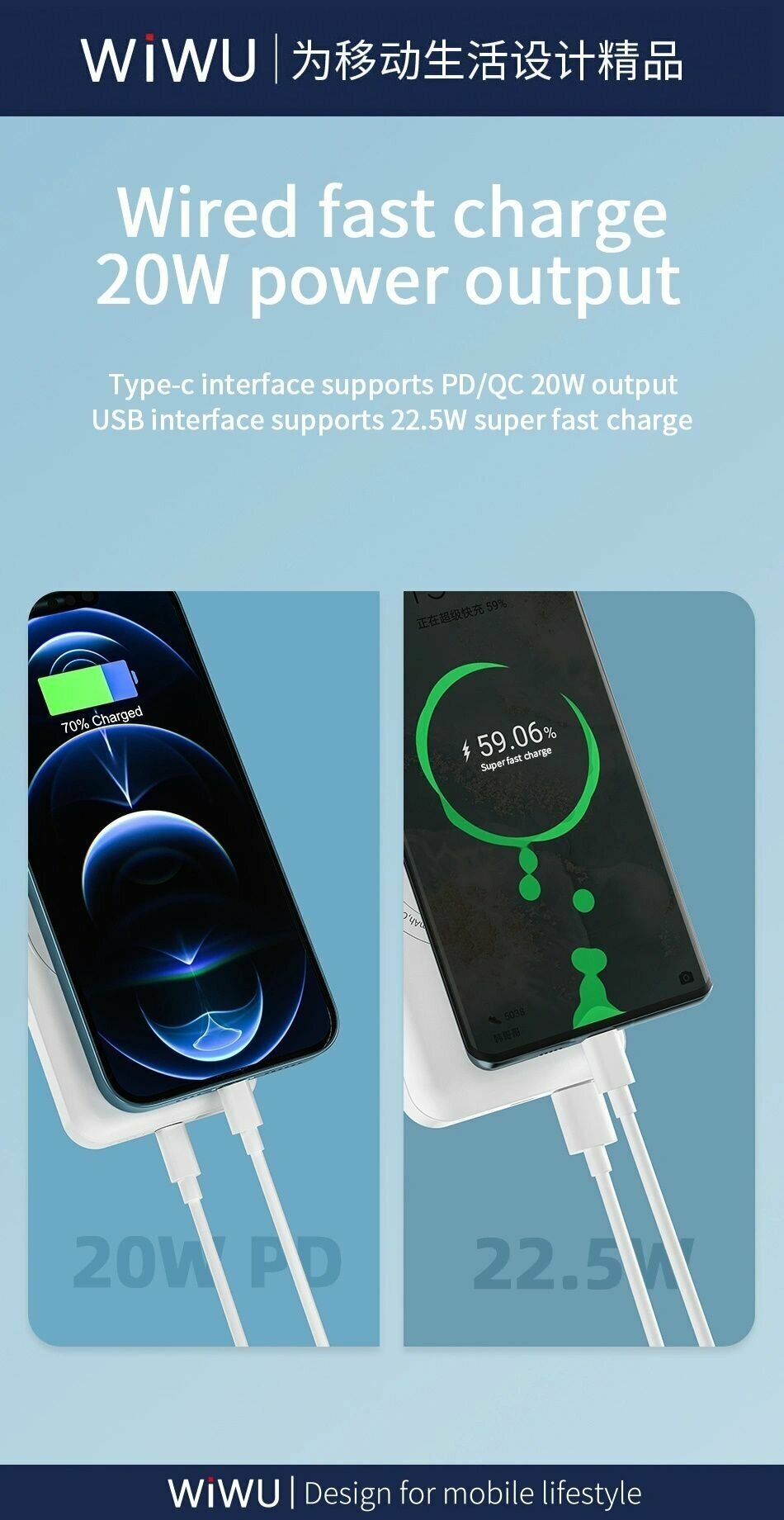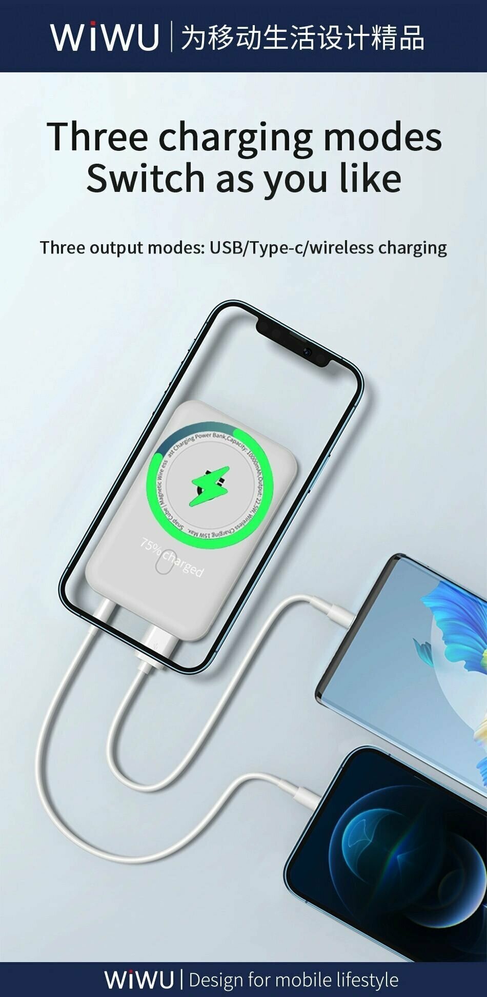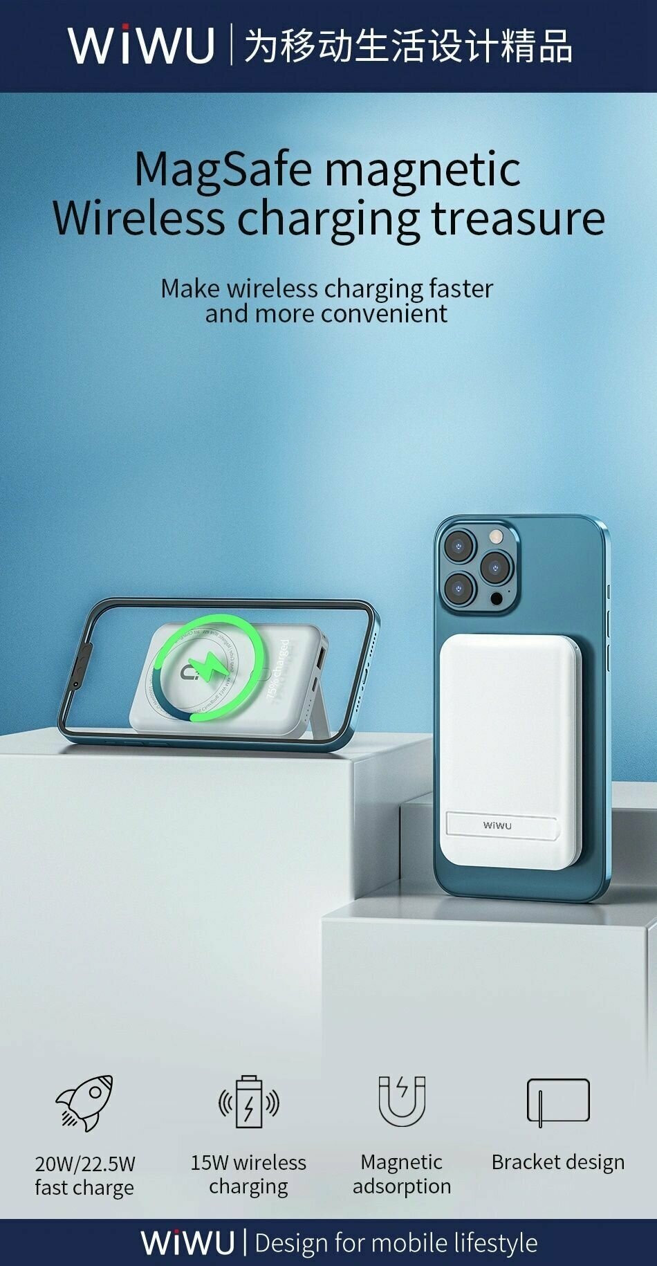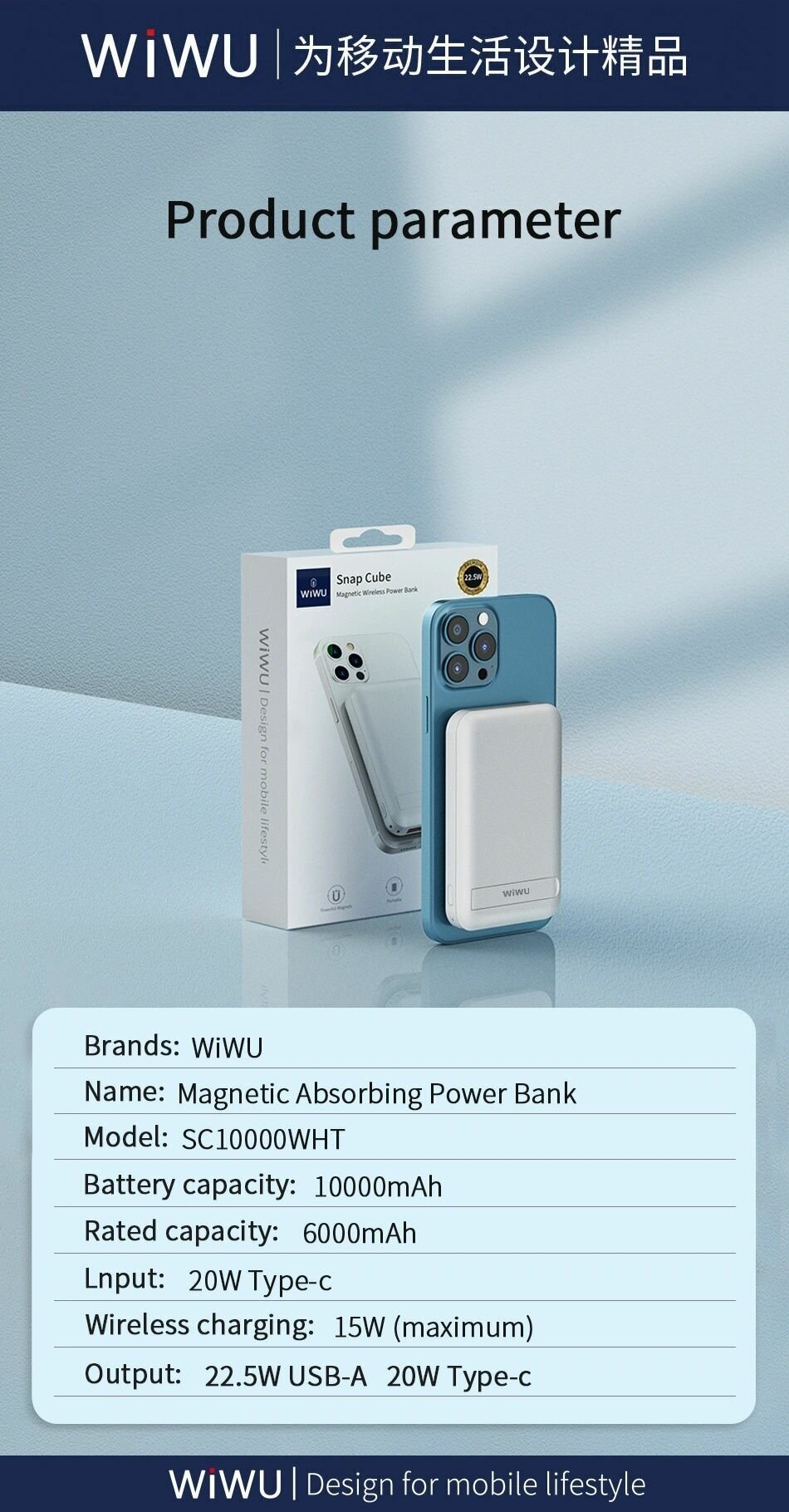 Внешний аккумулятор WiWU Snap Cube Magnetic Wireless Charger Power Bank 10000mAh