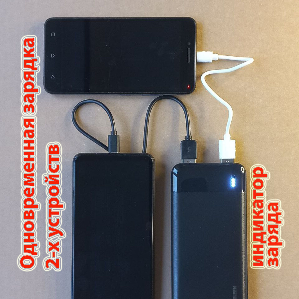 | Особенности | зарядка двух устройств / индикатор заряда |