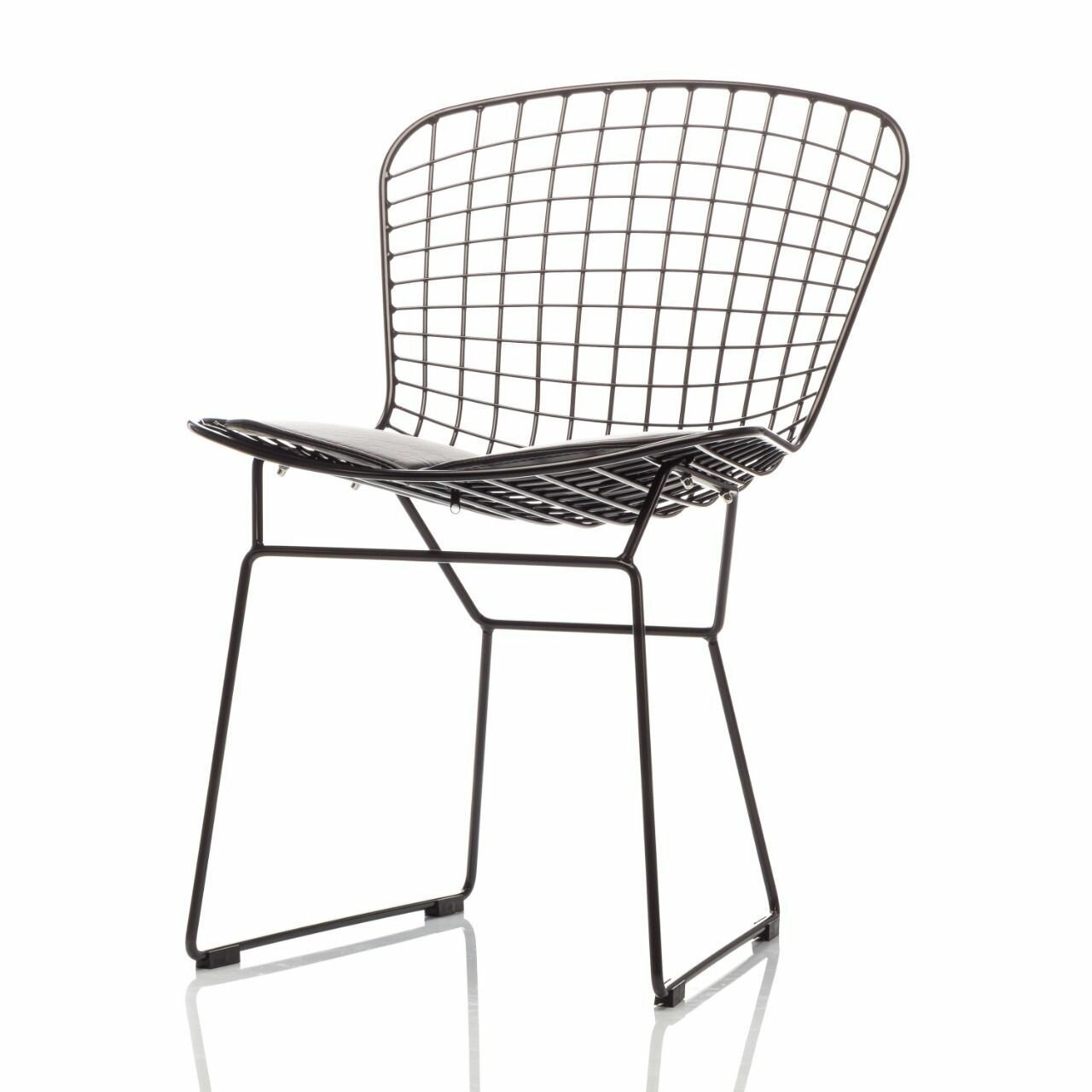 Стул полубарный с низкой спинкой Bertoia, черный, с черной подушкой