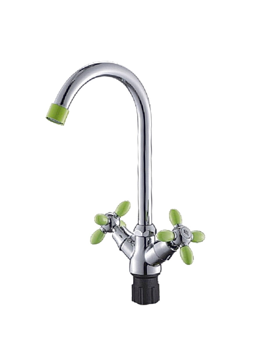 Смеситель д/кухни с высоким изливом, крепление гайка, зеленые ручки, Эверест (Россия), арт B59-071E