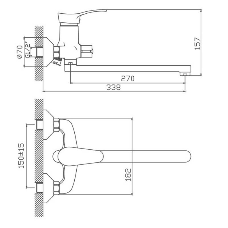 Смеситель CRON CN2214 для ванны однорычажный, длинный излив