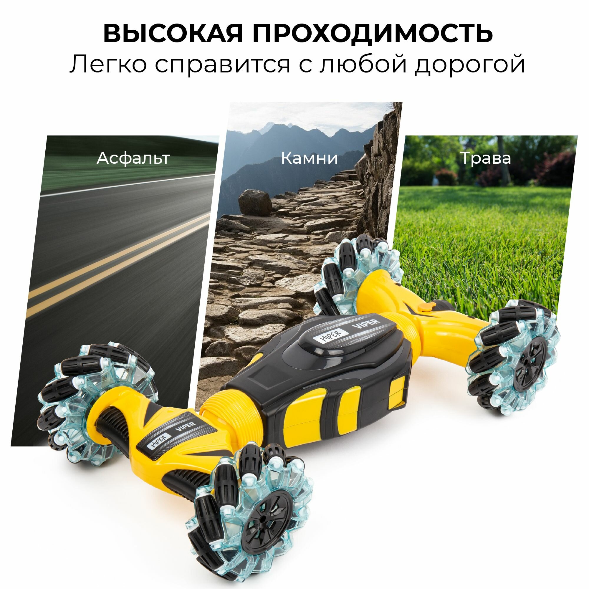 Купить Машина на радиоуправлении Hiper HCT-0017 Внедорожник VIPER 4x4 с паром+управление жестами желтый 1:12