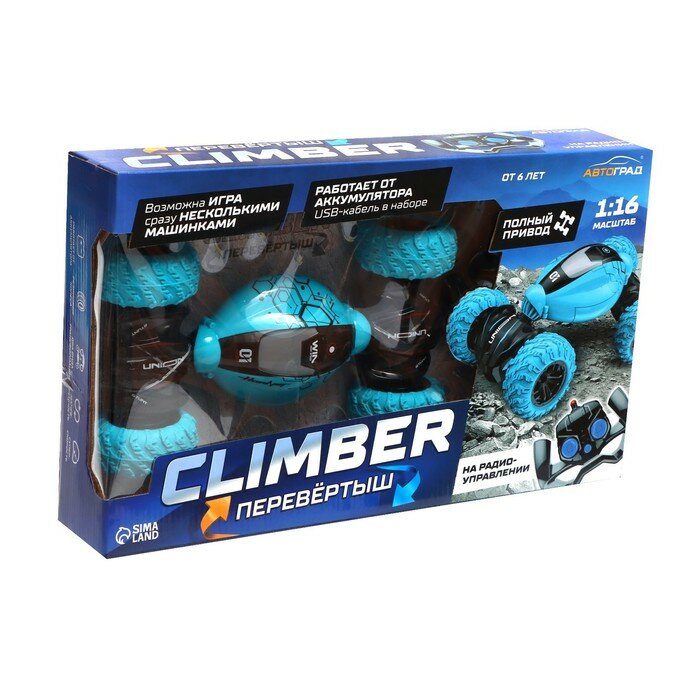 Автоград Перевёртыш радиоуправляемый CLIMBER, 1:16, 4WD, работает от аккумулятора, цвет синий интересное: