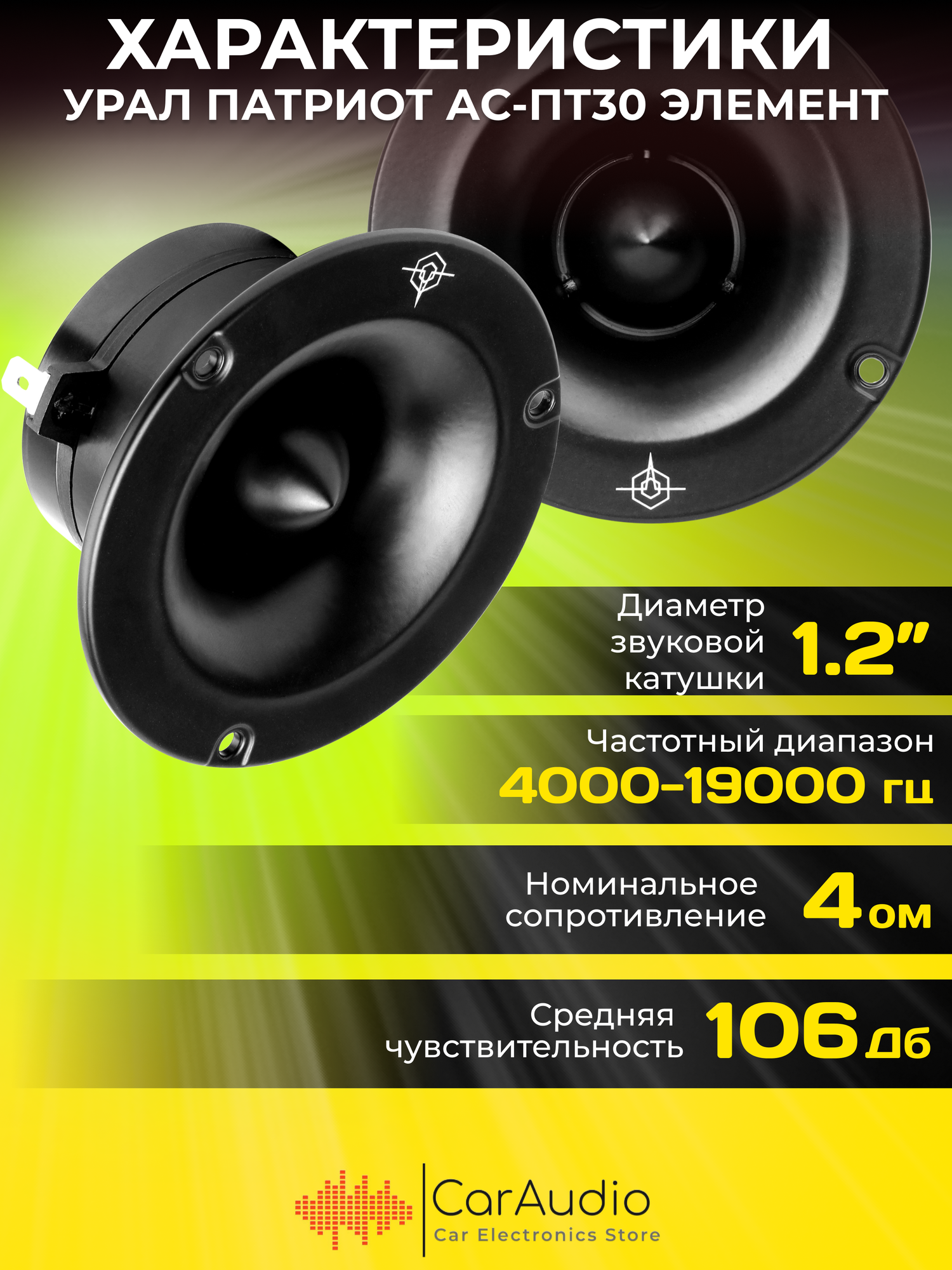 Высокочастотная акустическая система (рупор) урал патриот АС-ПТ30 элемент, 4 дюйма (10 см), 4000-19000 Гц, З0 Вт, 2 Динамика