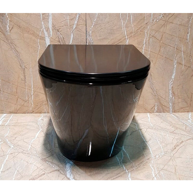 Унитаз напольный приставной Ceramalux безободковый Rimless с сиденьем черный глянцевый NS3178-18