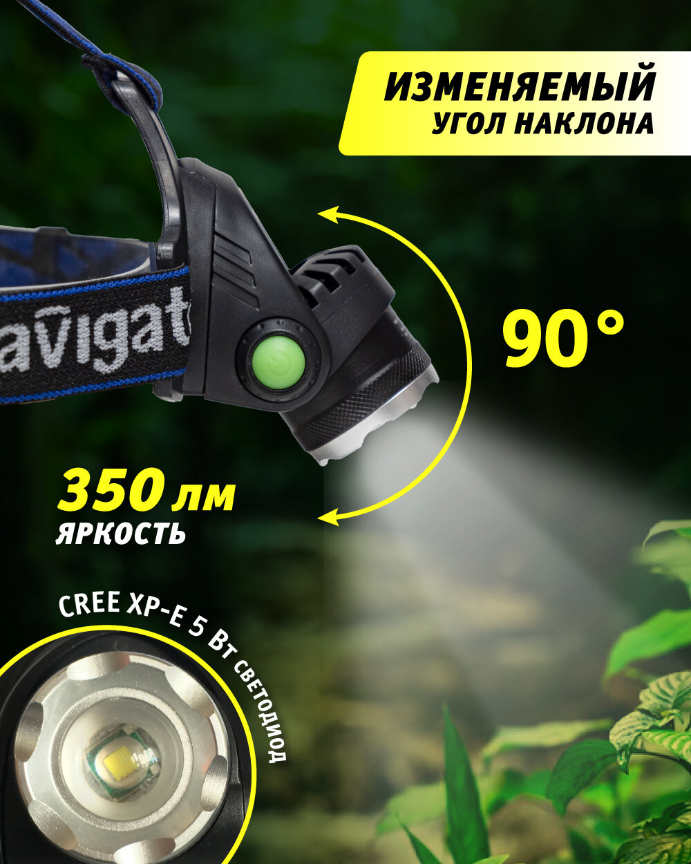 Фонарь светодиодный NPT-H15-ACCU 5Вт CREE XP-E LED аккумуляторный налобный пластик 20559 Navigator Group