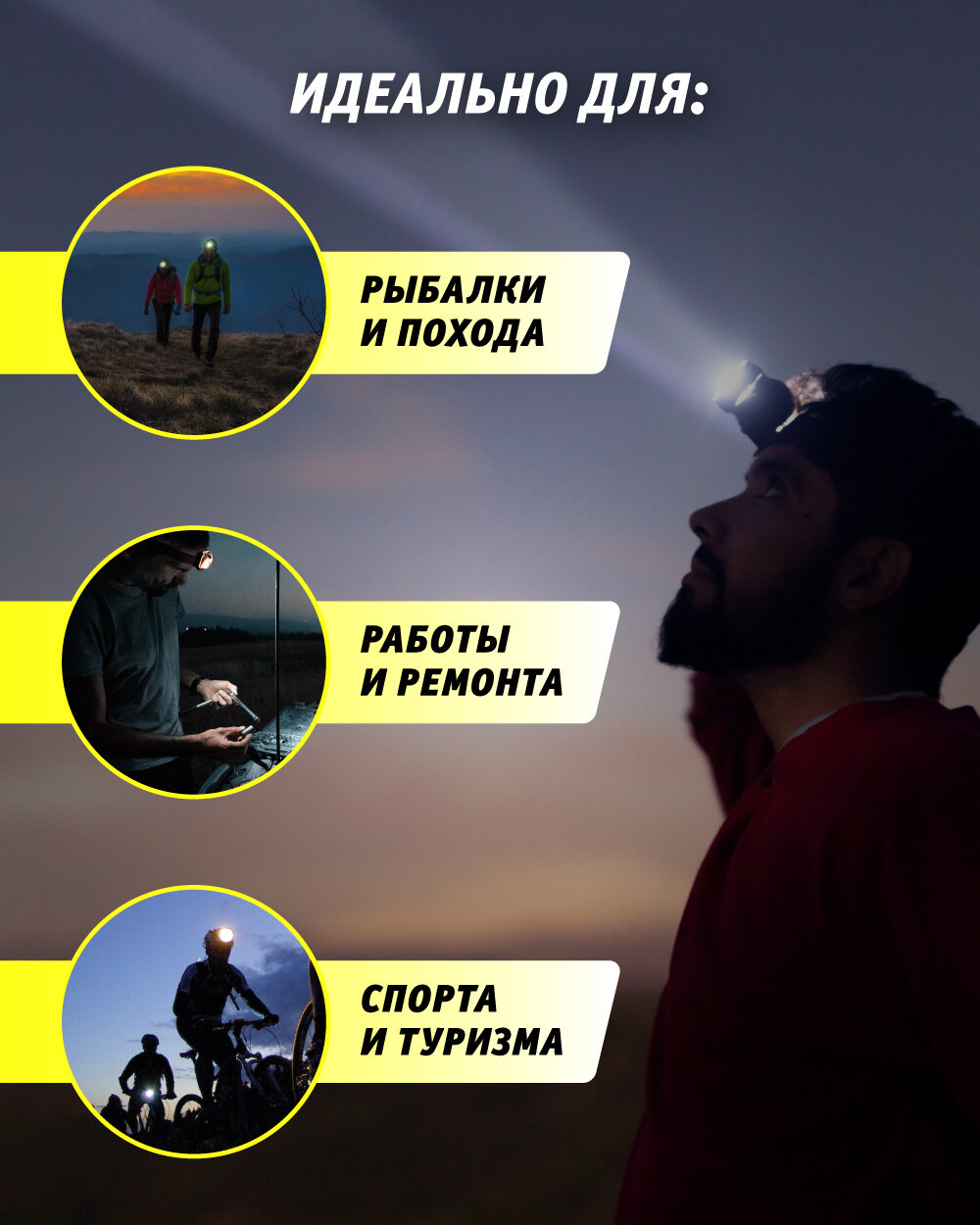 Фонарь налобный аккумуляторный Navigator 61 438 NPT-H15, 3 режима работы, аккум. Li-Ion 2400 мАч