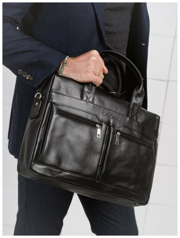 Мужская кожаная сумка для ноутбука Carlo Gattini Lugano black 1007-01 интересное: