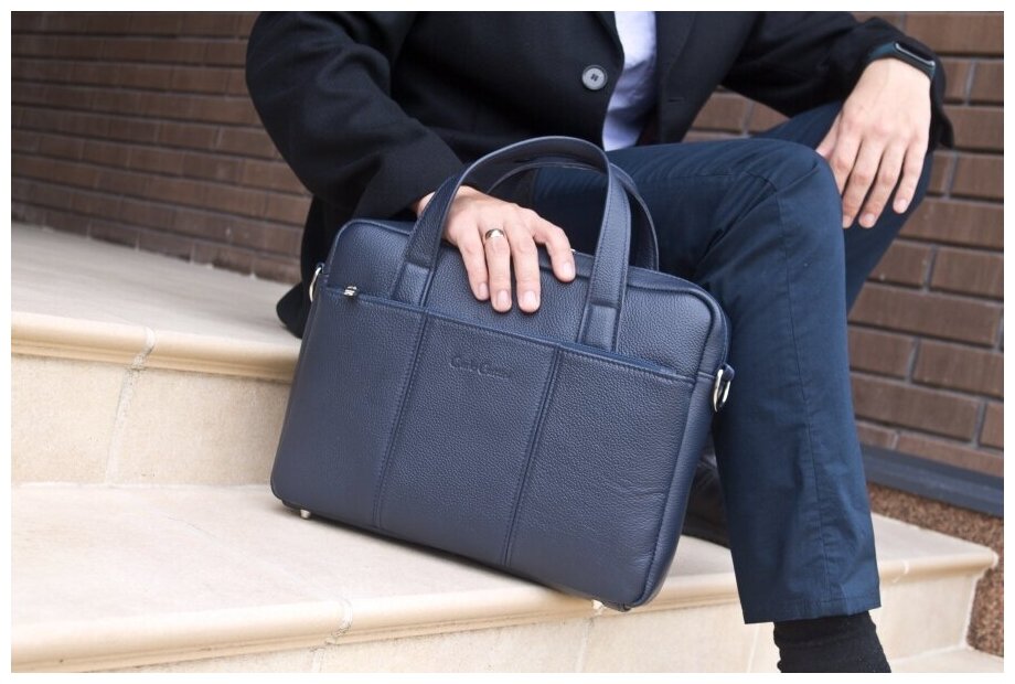 Мужская кожаная сумка для ноутбука Carlo Gattini Vezzani dark blue 1018-19 интересное: