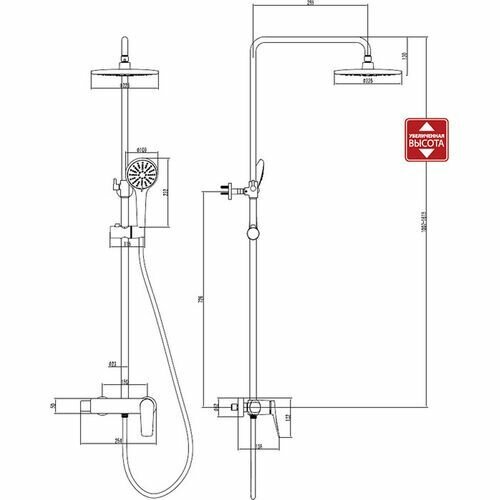 | Особенности | держатель душевой лейки / регулируемый верхний душ |