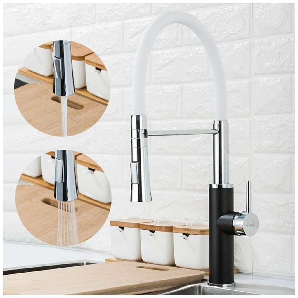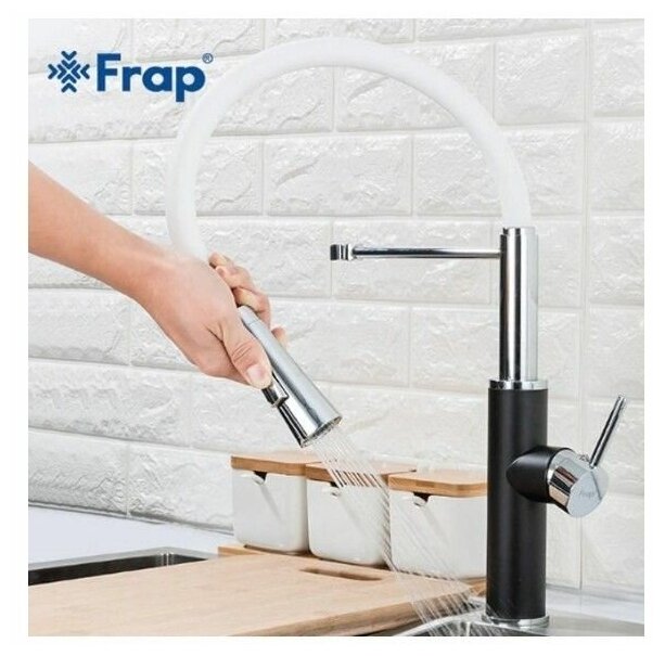 Смеситель для кухни, Frap, гибк излив, с картриджем, черно-бел, F4452-7 интересное: