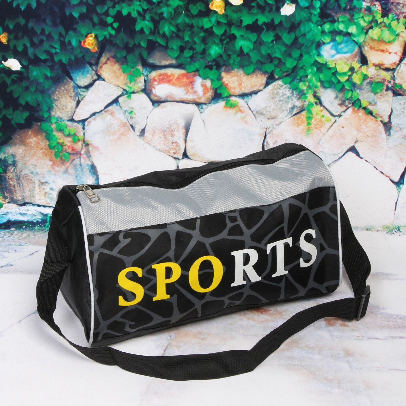 Сумка спортивная "Sports Time", принт черный , 38х21х20см