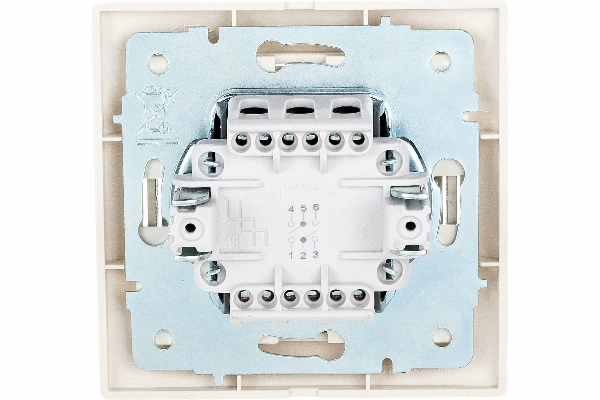LEZARD Переключатель проходной 2-кл. СП Mira 10А IP20 с бел.вставкой бел. LEZARD 701-0202-106