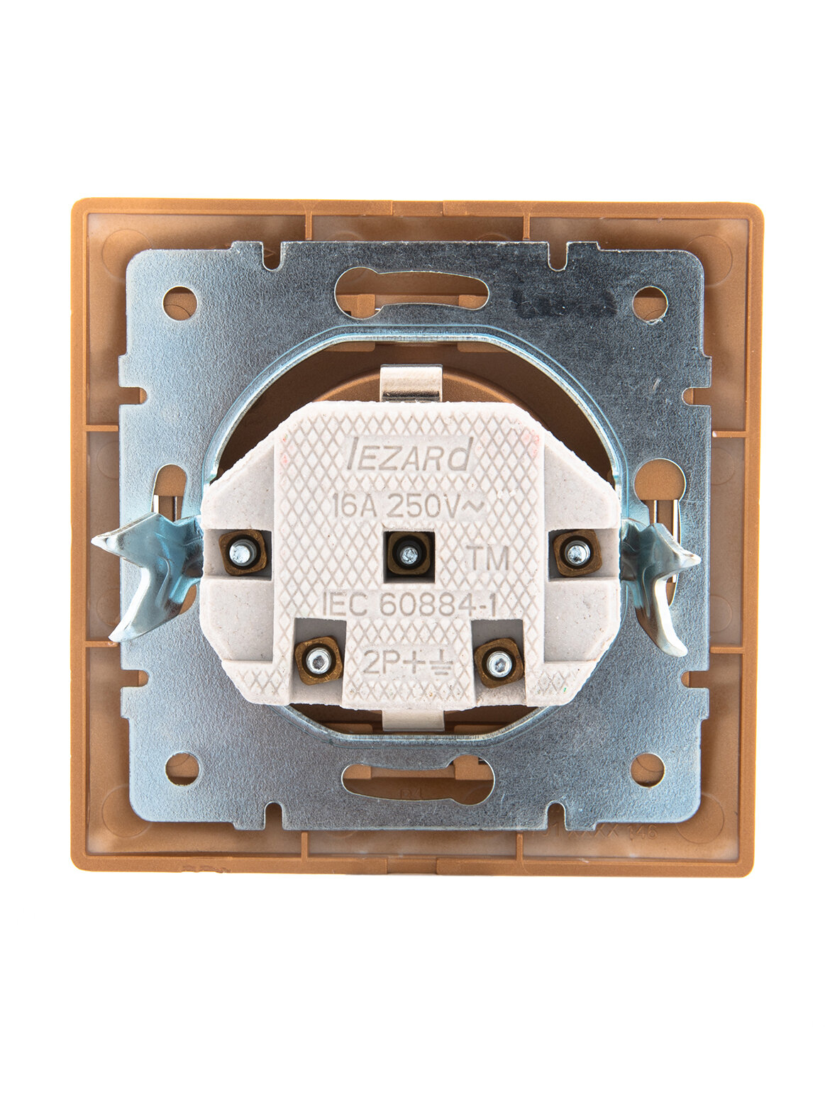 Розетка 2-м СП Mira 16А IP20 с заземл. со вставкой керамика зол. метал. LEZARD 701-1313-127