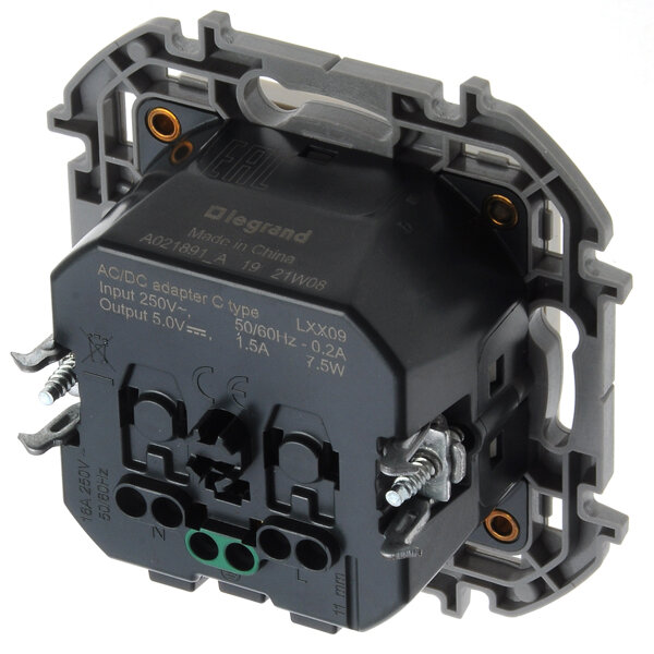 1 шт. Legrand INSPIRIA Алюминий Розетка 2К+З немецкий стандарт 16А 250В со встроенным зарядным устройством USB C 1.5А 5В, 673772