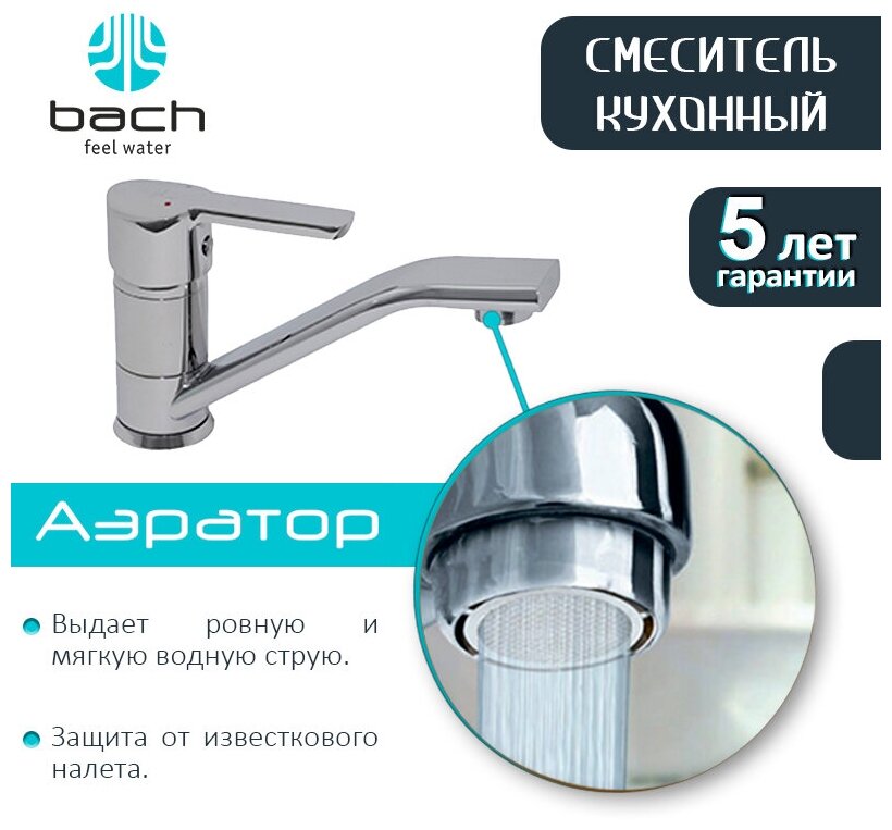 Смеситель BACH для кухни D35мм, короткий излив 80448107 интересное: