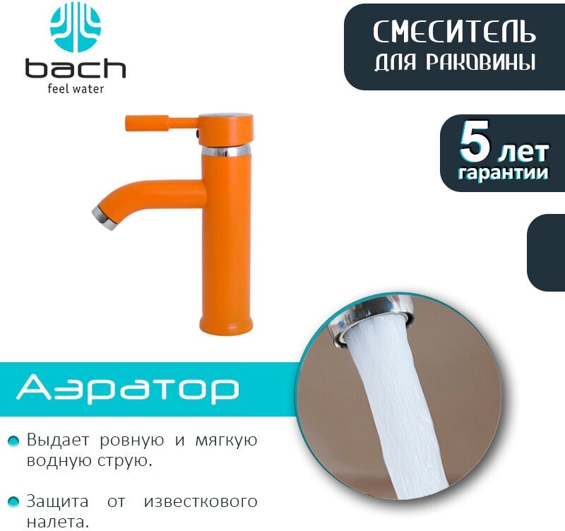 Смеситель BACH для раковины высокий шар. 700017OR оранжевый интересное: