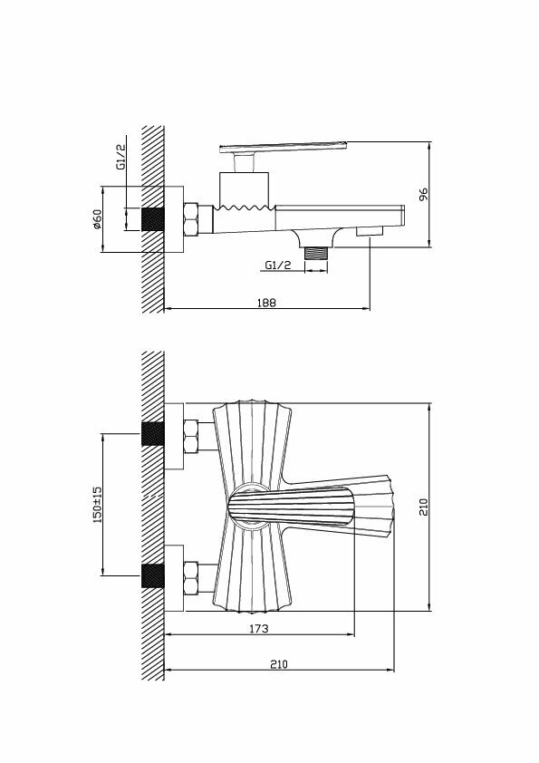 Bach / Смеситель Для ванны Монолитный излив 1-функциональная лейка / Код 12054