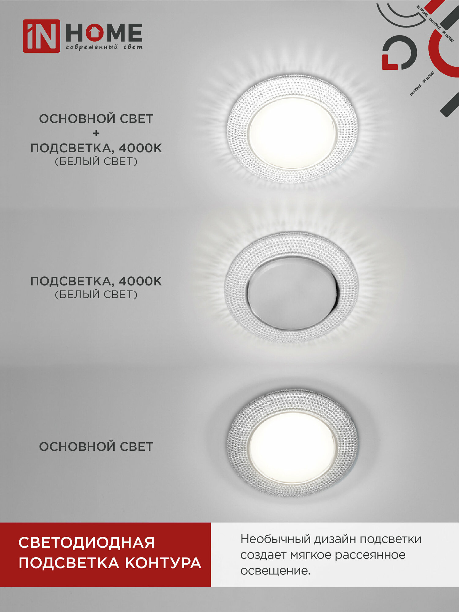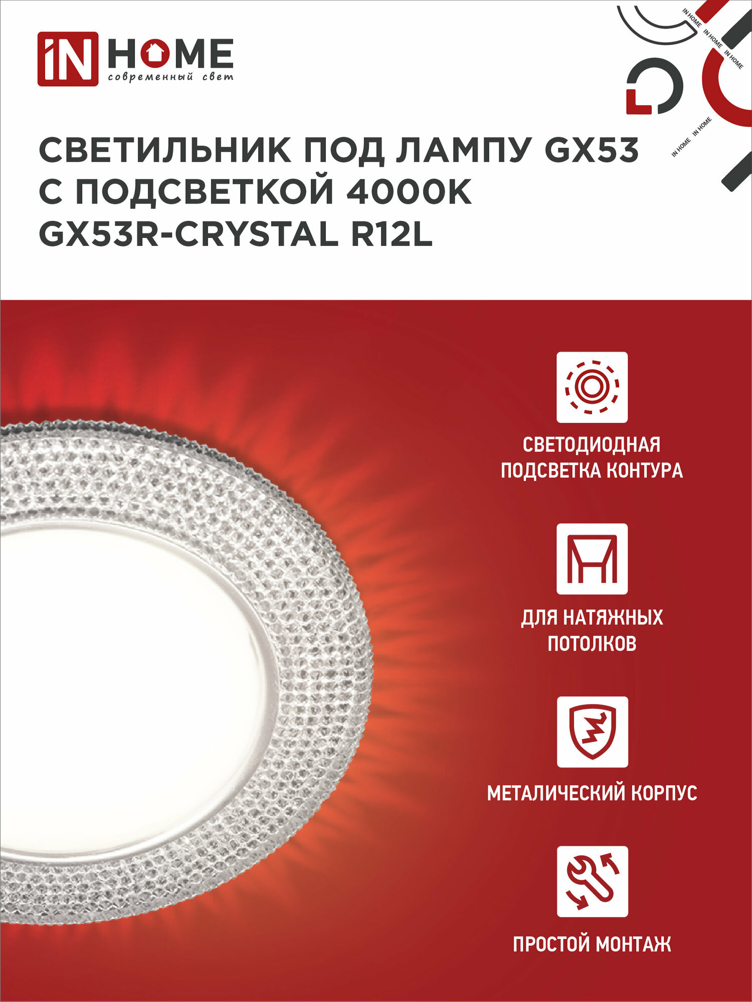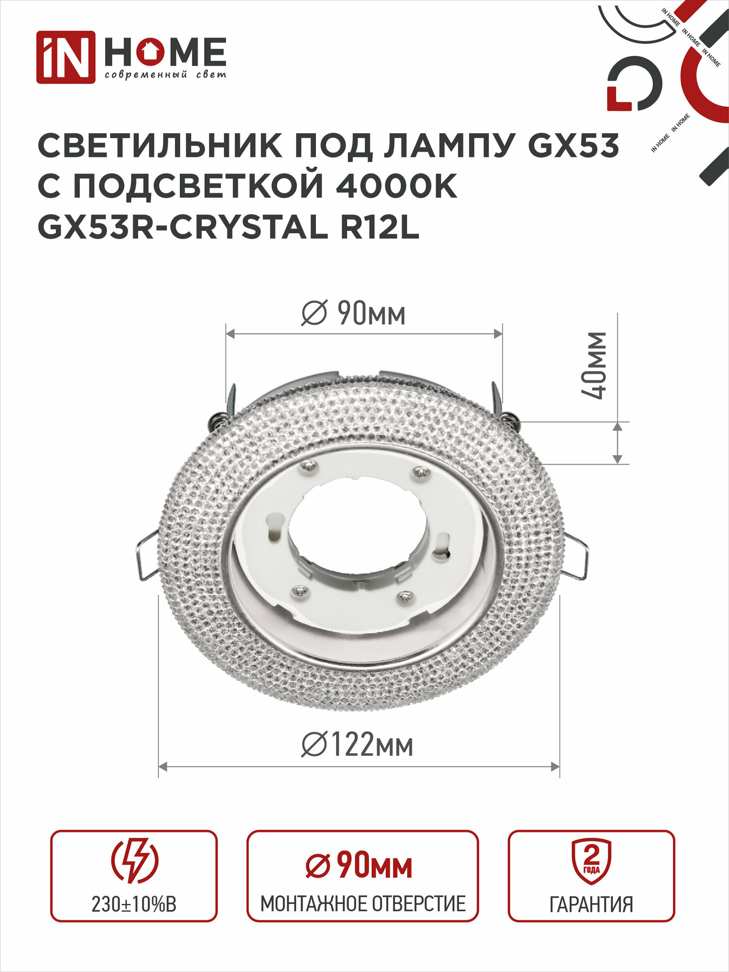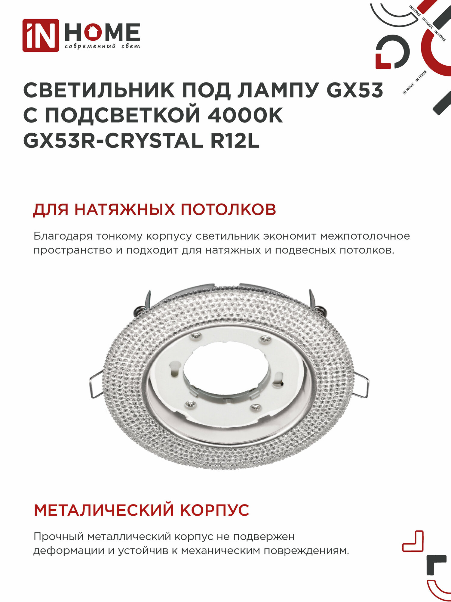 Светильник встраиваемый IN HOME GX53R-R12L-crystal под лампу GX53 с подсветкой Прозрачный/ Хром 4690612016221