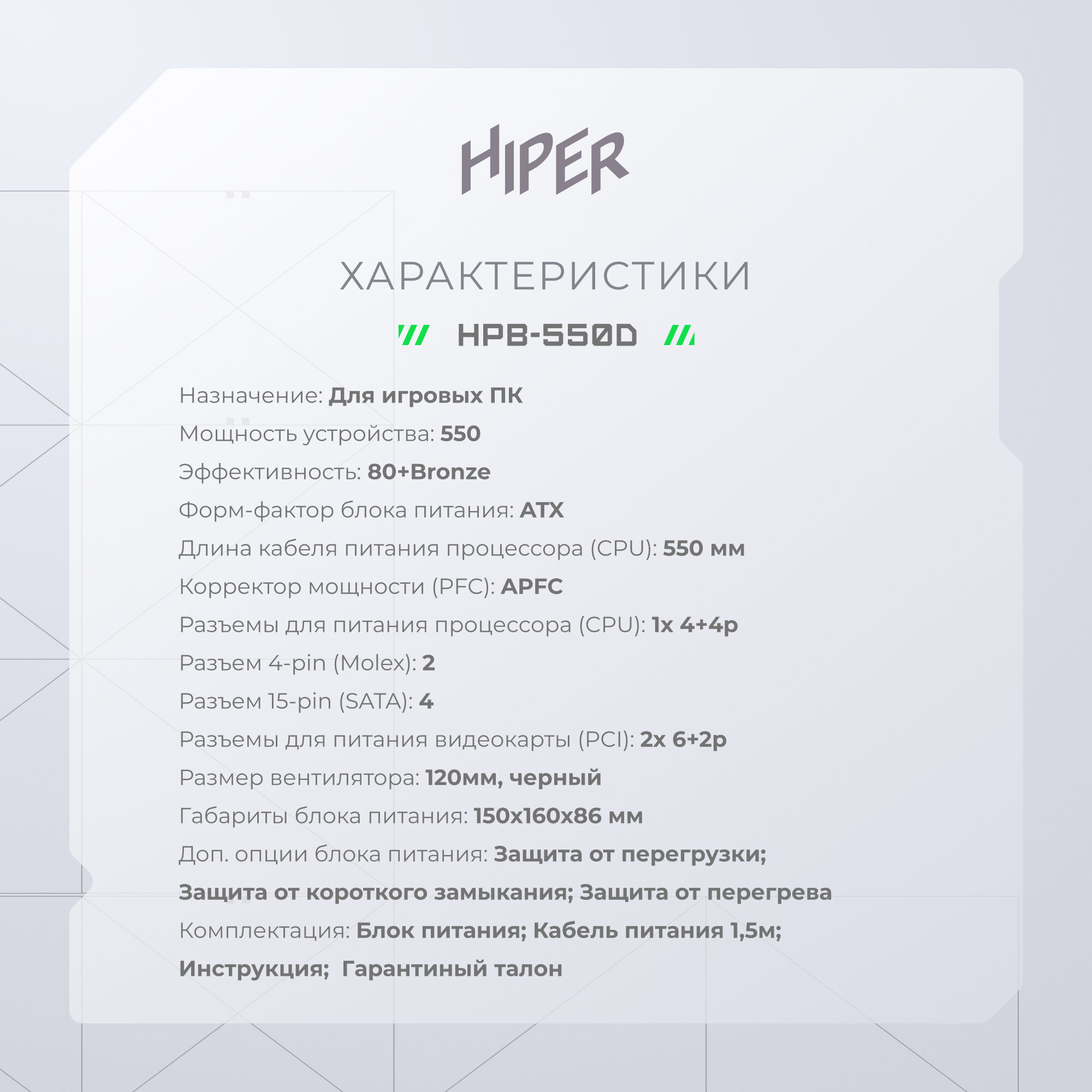 Купить Блок питания HIPER HPB-550D, 550Вт, 120мм