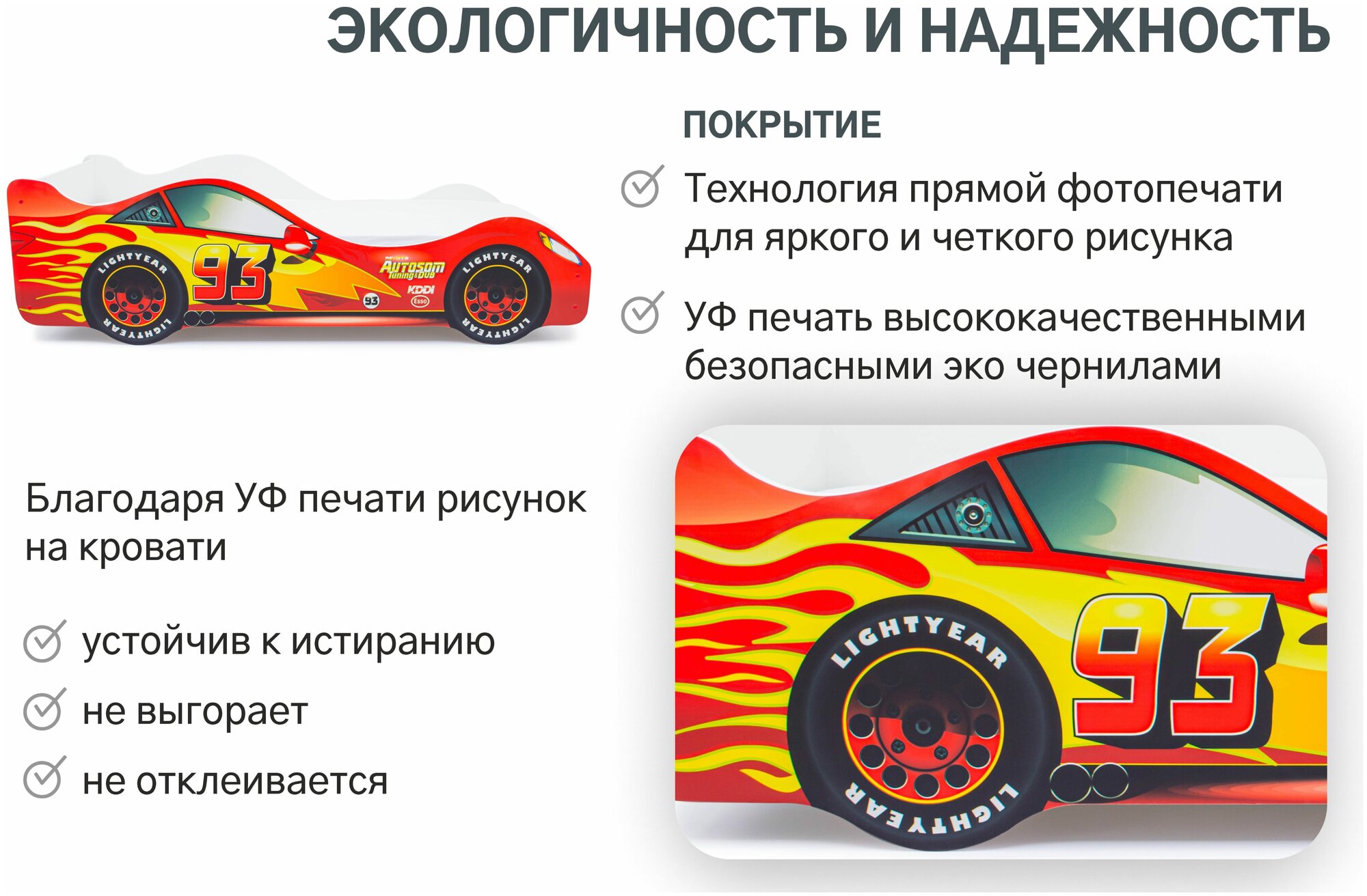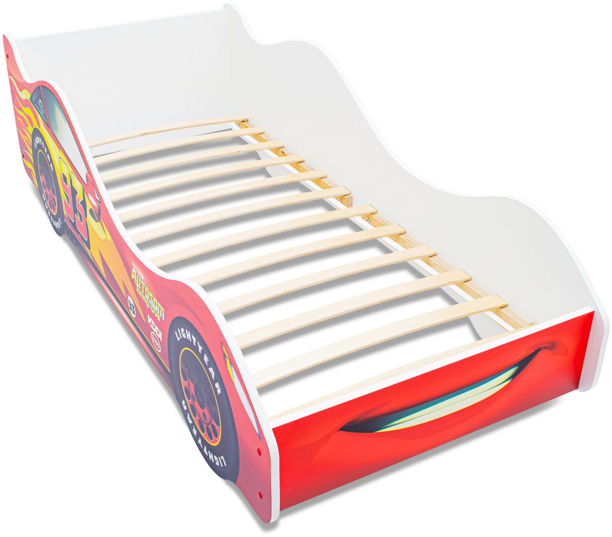 Детская кровать машина Молния с ортопедическим основанием и бортиком