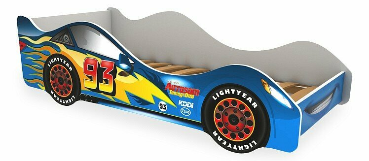 Детская кровать машина Молния с ортопедическим основанием и бортиком