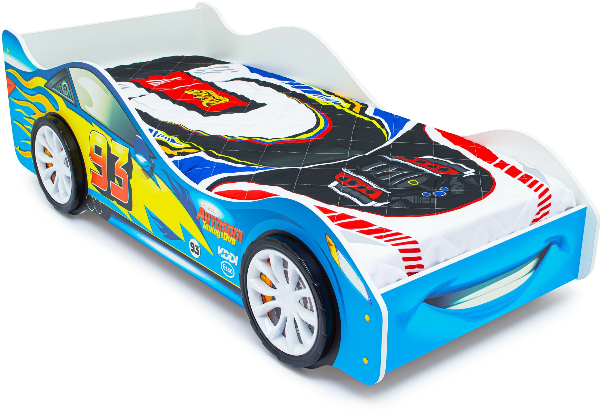 Детская кровать машина Пламя с ортопедическим основанием и бортиком