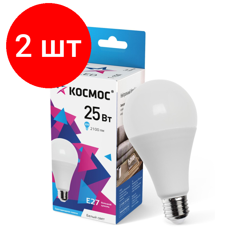 Лампа светодиодная A65 25Вт 4500К E27 220В космос LkecLED25wA65E2745 (2шт. в упак.)