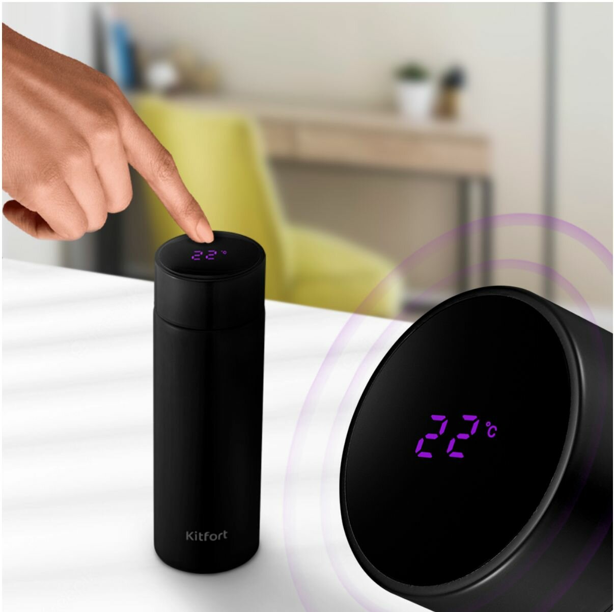 Термос Kitfort KT-1234 объем 1л, сохраняет тепло и холод до 24ч, из нержавеющей стали, черный