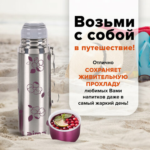 Термос Лайма с узким горлом, 0,5 л, нержавеющая сталь, с рисунком (601410)