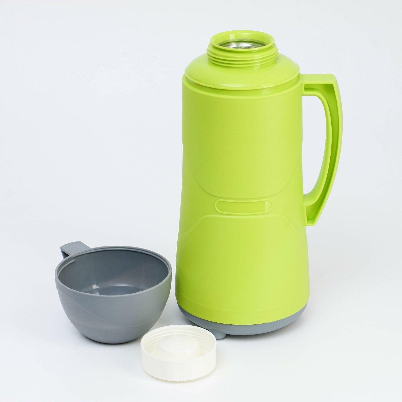 Термос 1 л, со стеклянной колбой, сохраняет тепло 8 ч, 30 х 16 см, зеленый