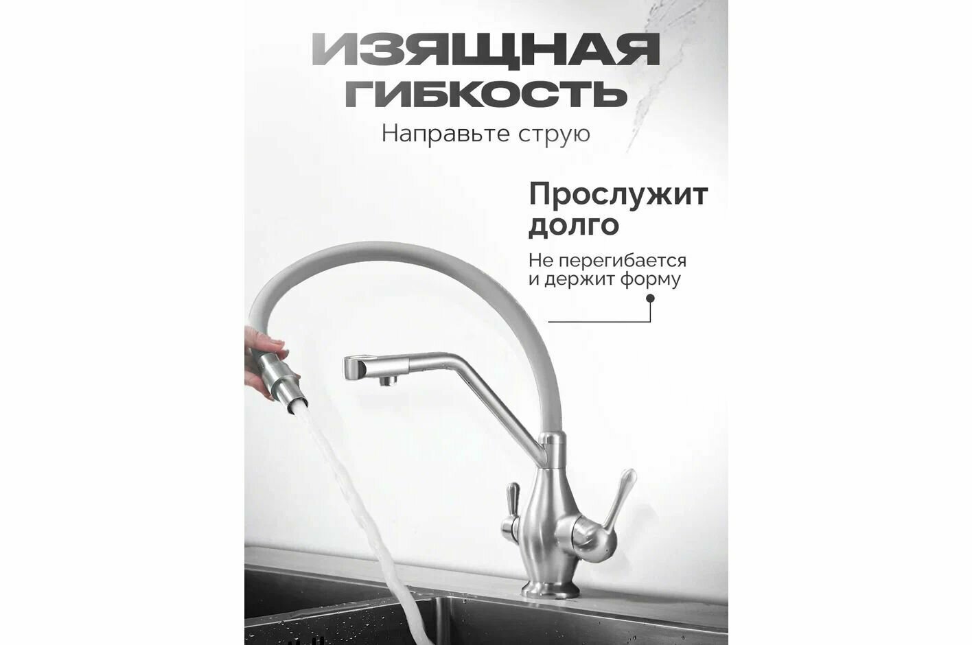 Смеситель для кухни с гибким изливом и подключением фильтра Rose R858L
