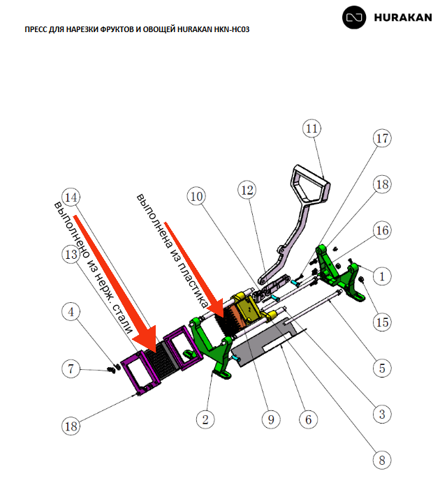 Пресс для нарезки фруктов и овощей Hurakan hkn-hc03 интересное: