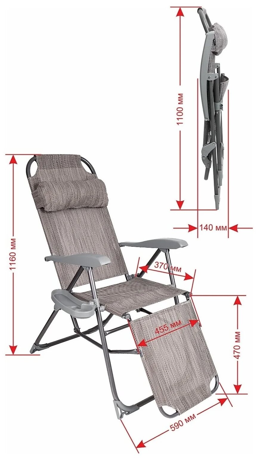 | Особенности | подголовник / подлокотники / подставка для ног / подстаканник / регулировка положения спинки / складной |