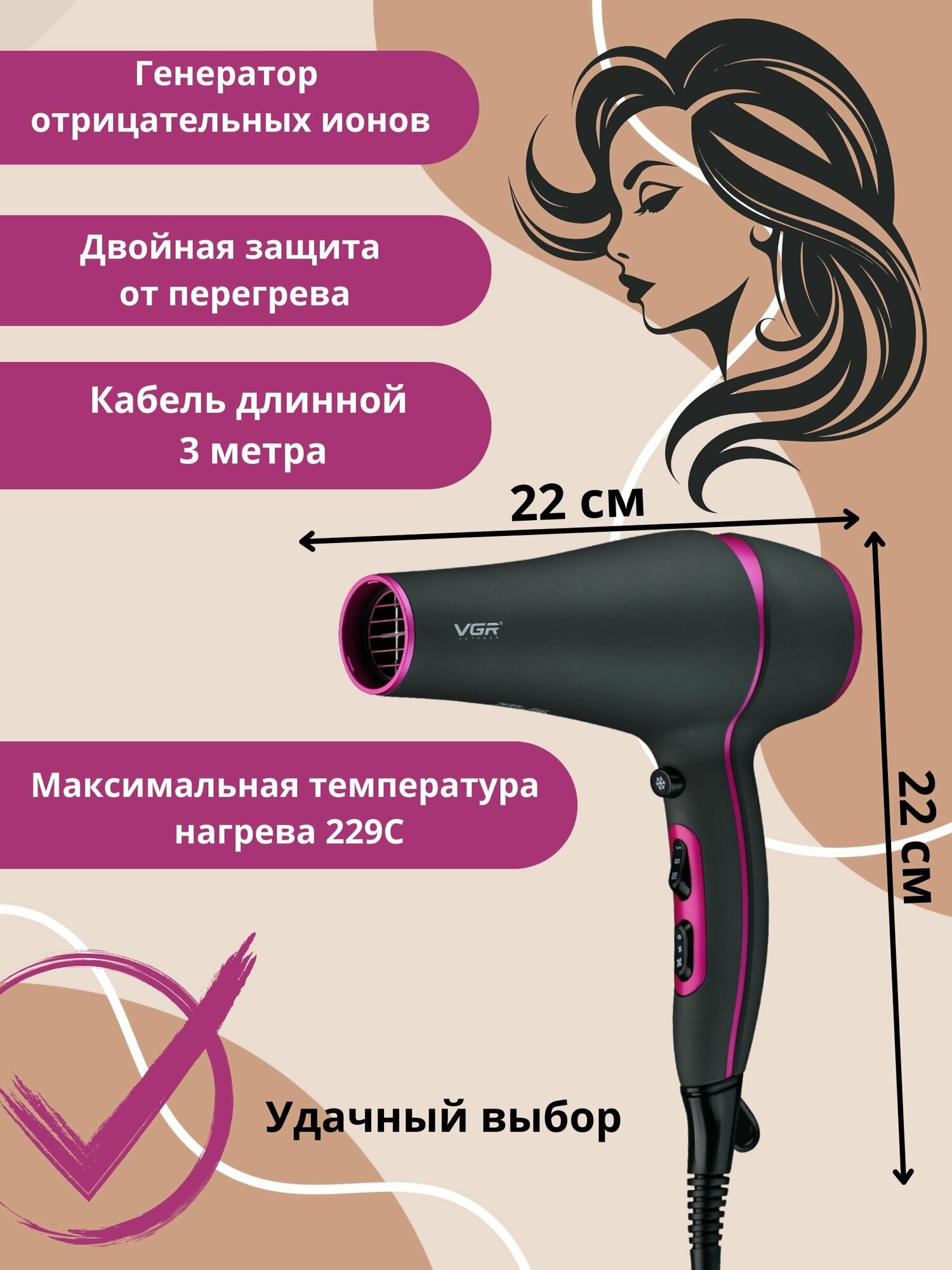 Профессиональный фен для волос VGR V-453