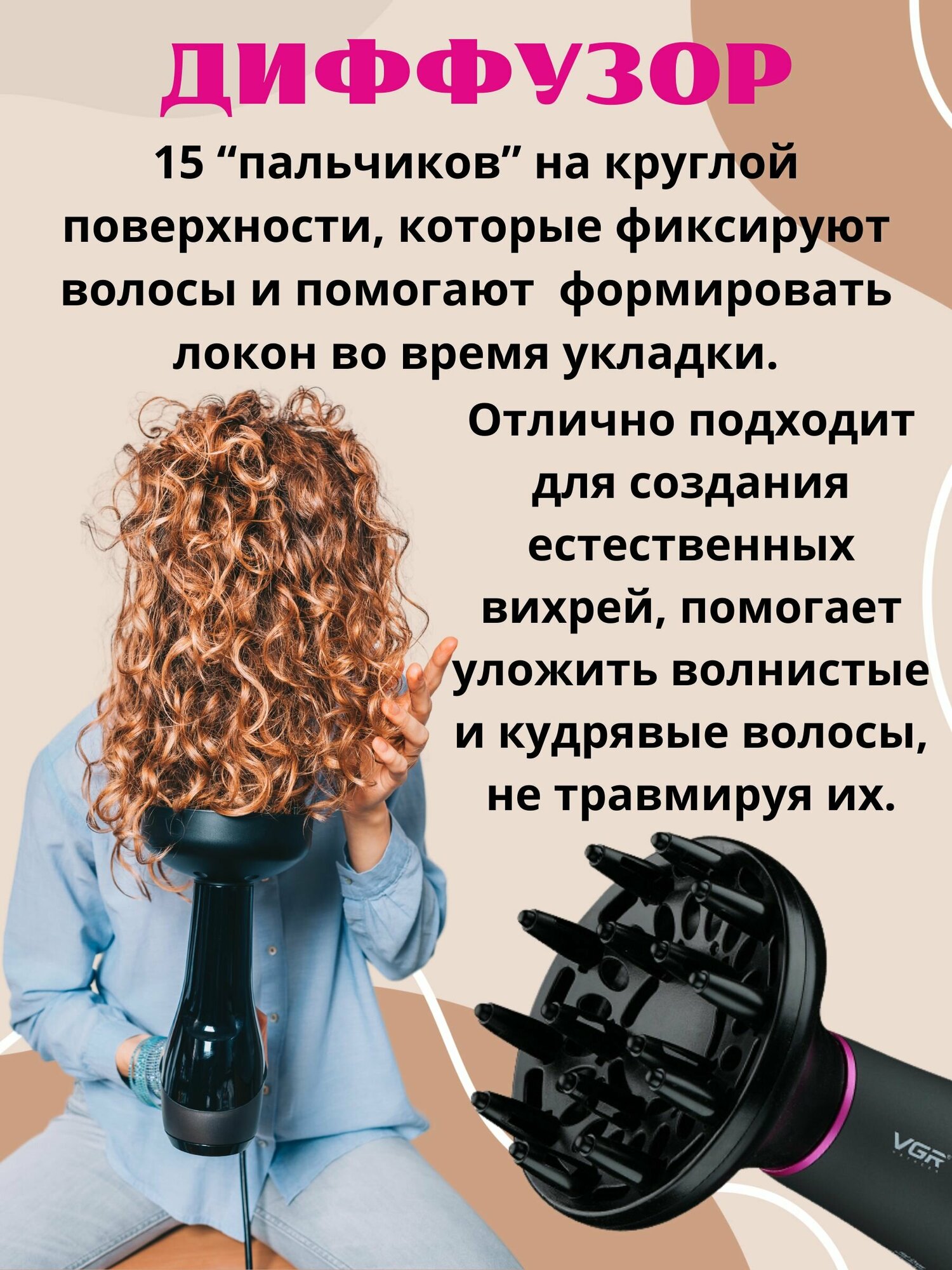 Набор для укладки волос, Фен для волос VGR V-402 Professional