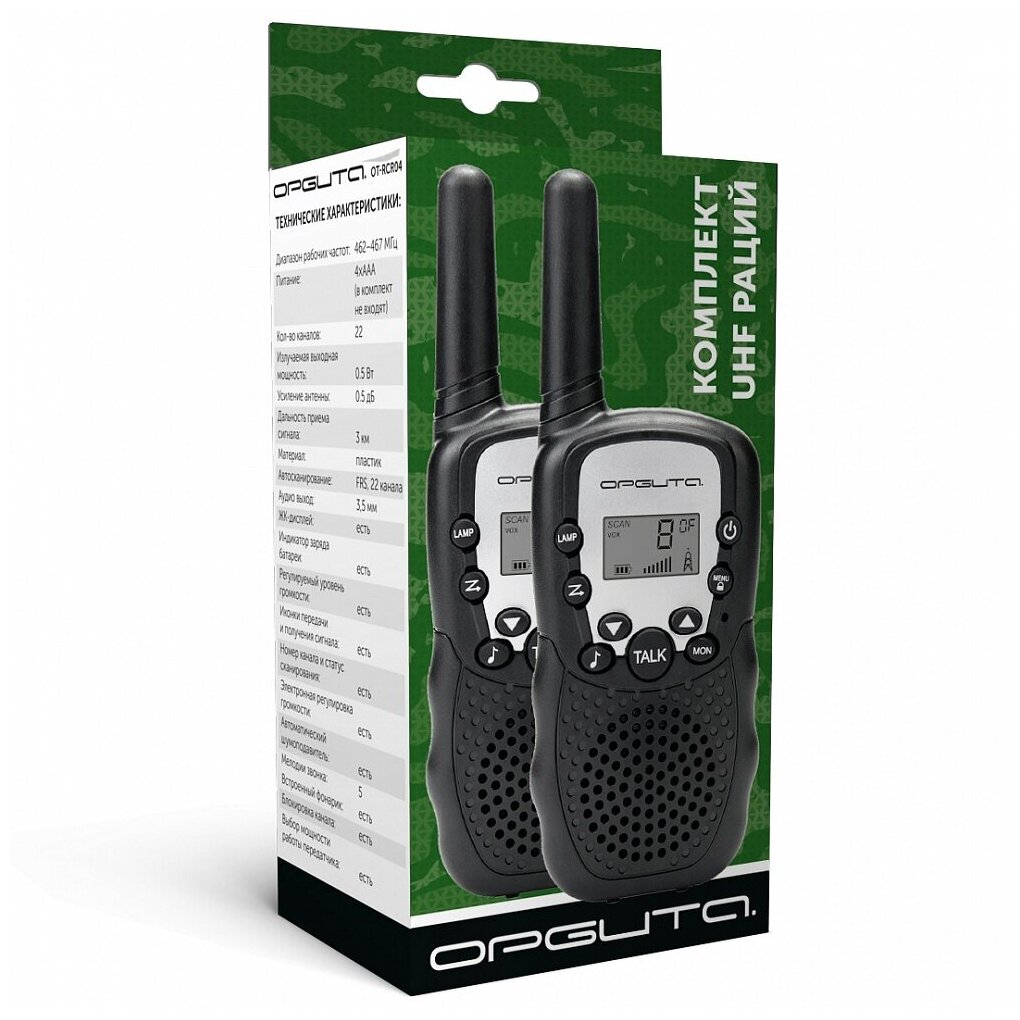 Рации (UHF) Орбита OT-RCR04, набор 2шт , дальность до 3 км. интересное: