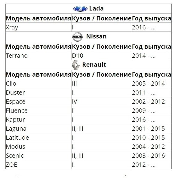 | Марка автомобиля | LADA (ВАЗ) / Nissan / Renault |