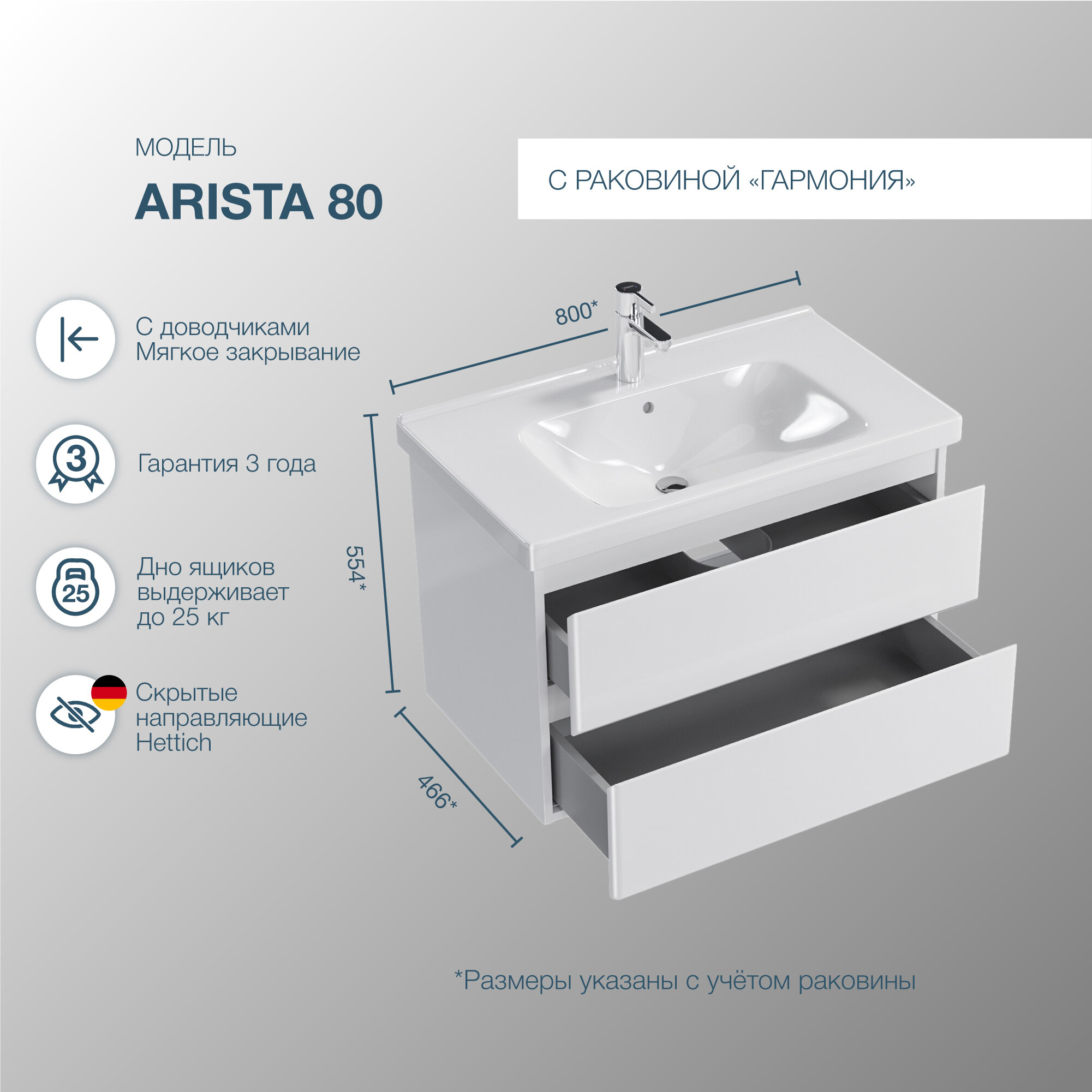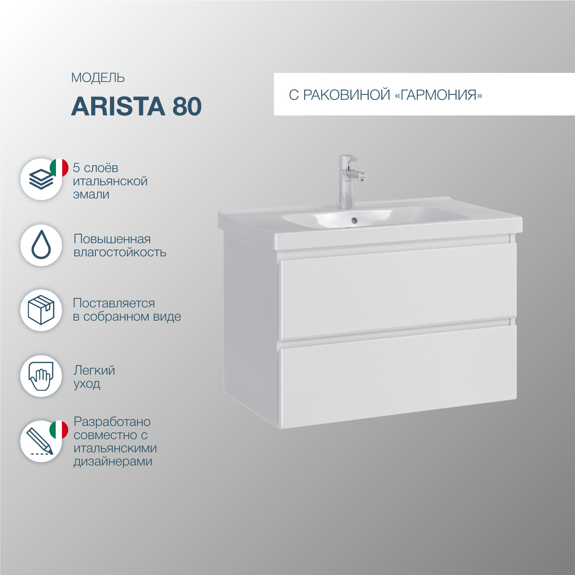 Тумба подвесная SanStar Arista 80 с раковиной Гармония 80 (комплект) для ванной комнаты, белая интересное: