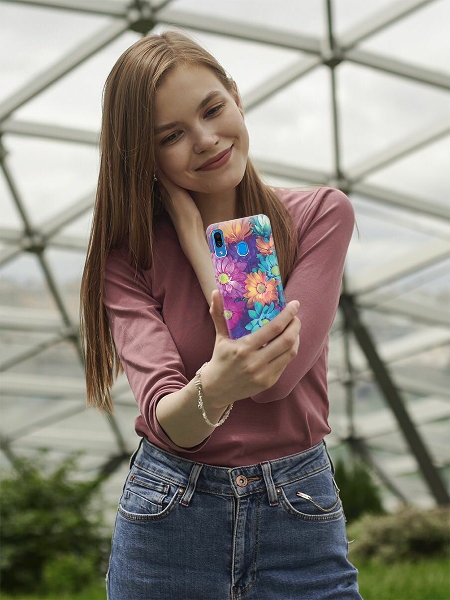 Ультратонкий силиконовый чехол-накладка для Samsung Galaxy A20, A30 с принтом "Много цветов"