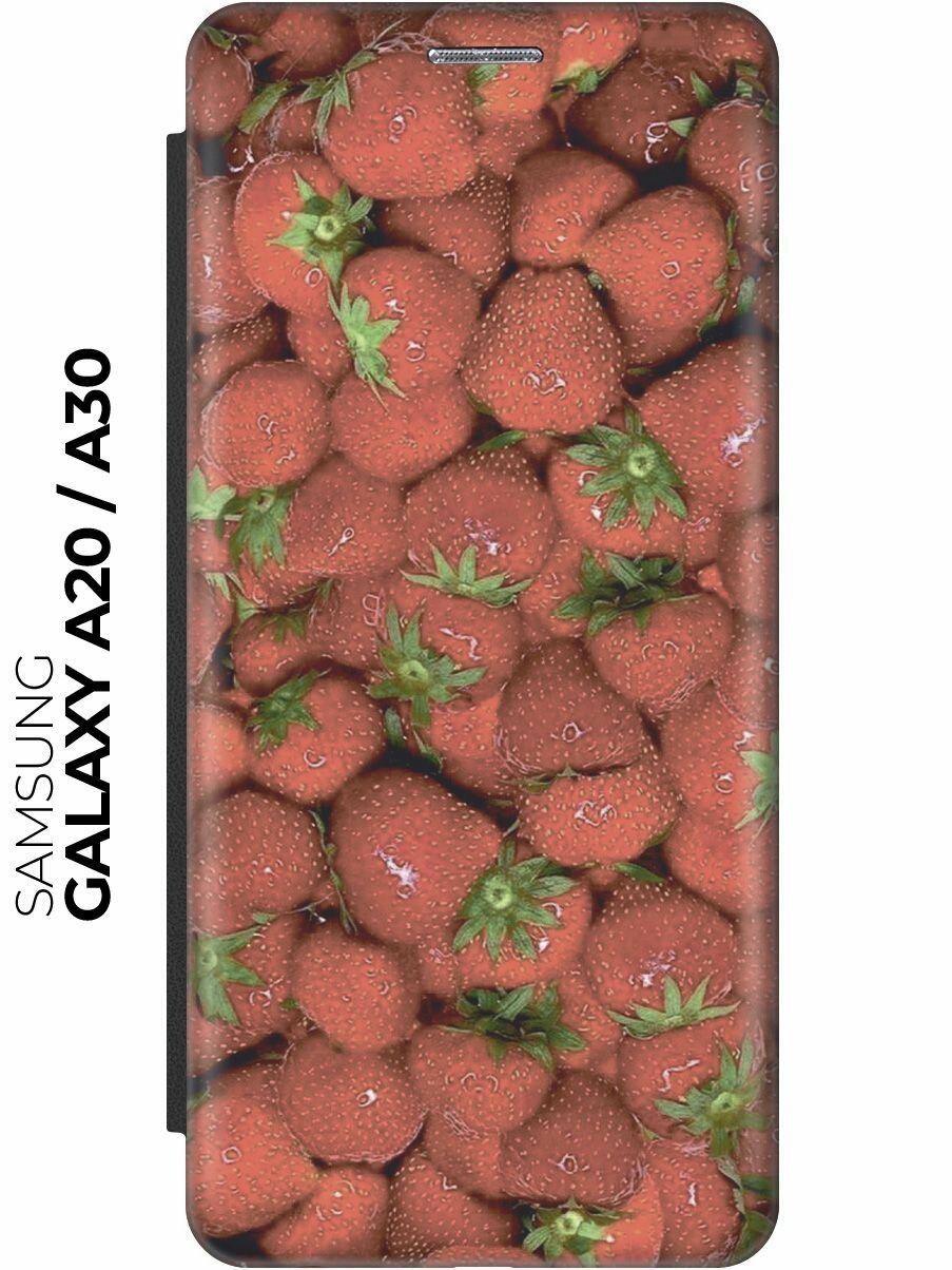 Чехол-книжка Клубничка на Samsung Galaxy A20 / A30 / Самсунг А20 / А30 черный интересное: