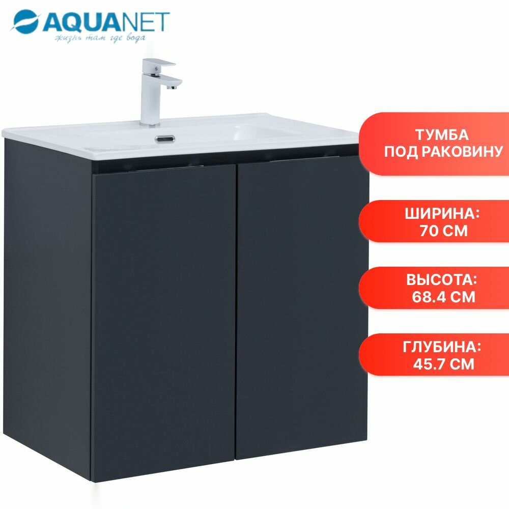 Тумба с раковиной Алвита New 70 2 дверцы подвесная антрацит матовая