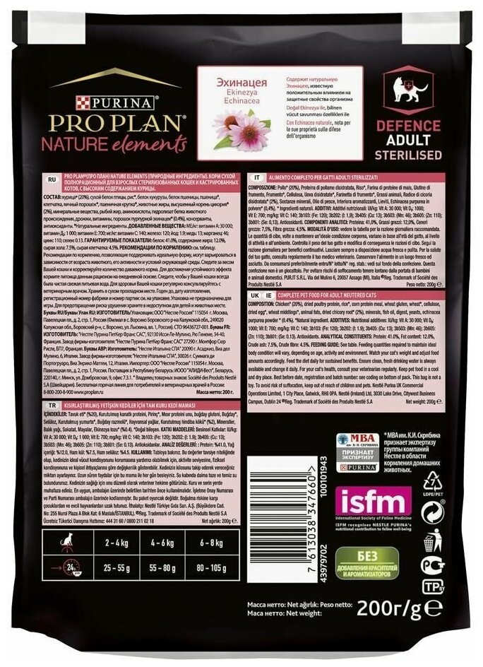 Корм для кошек PRO PLAN Nature Elements для стерилизованных и кастрированных, с курицей сух. 200г интересное: