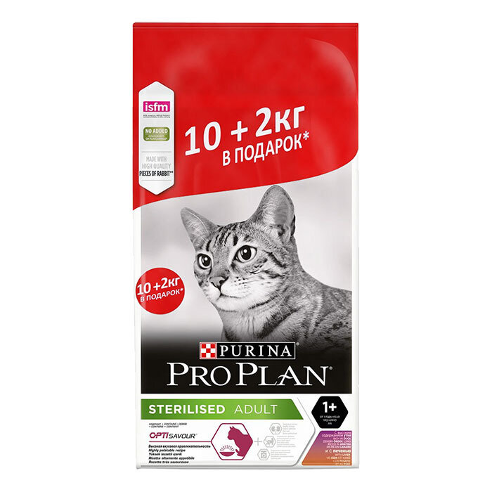 Сухой корм Pro Plan для взрослых стерилизованных кошек и кастрированных котов с высоким содержанием Утки и c Печенью Пакет 10 кг + 2 кг (12кг.) интересное: