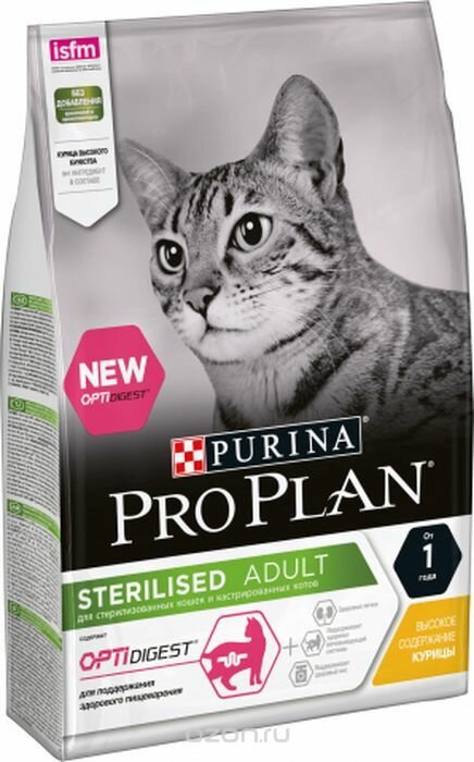 Корм сухой для взрослых кошек PURINA PRO PLAN Adult Sterilised с курицей, от 1 года, для стерилизованных и кастрированных, 400г интересное: