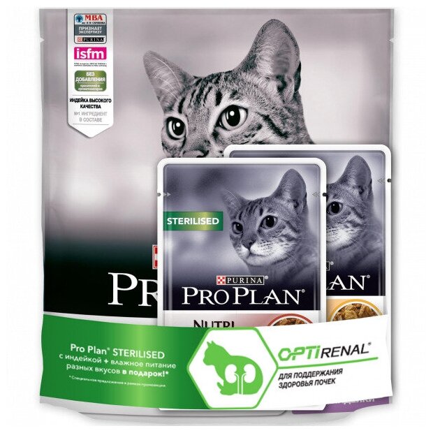Промопак: Сухой корм Pro Plan для стерилизованных кошек и кастрированных котов, с индейкой, 1,5 кг+2 пауча интересное:
