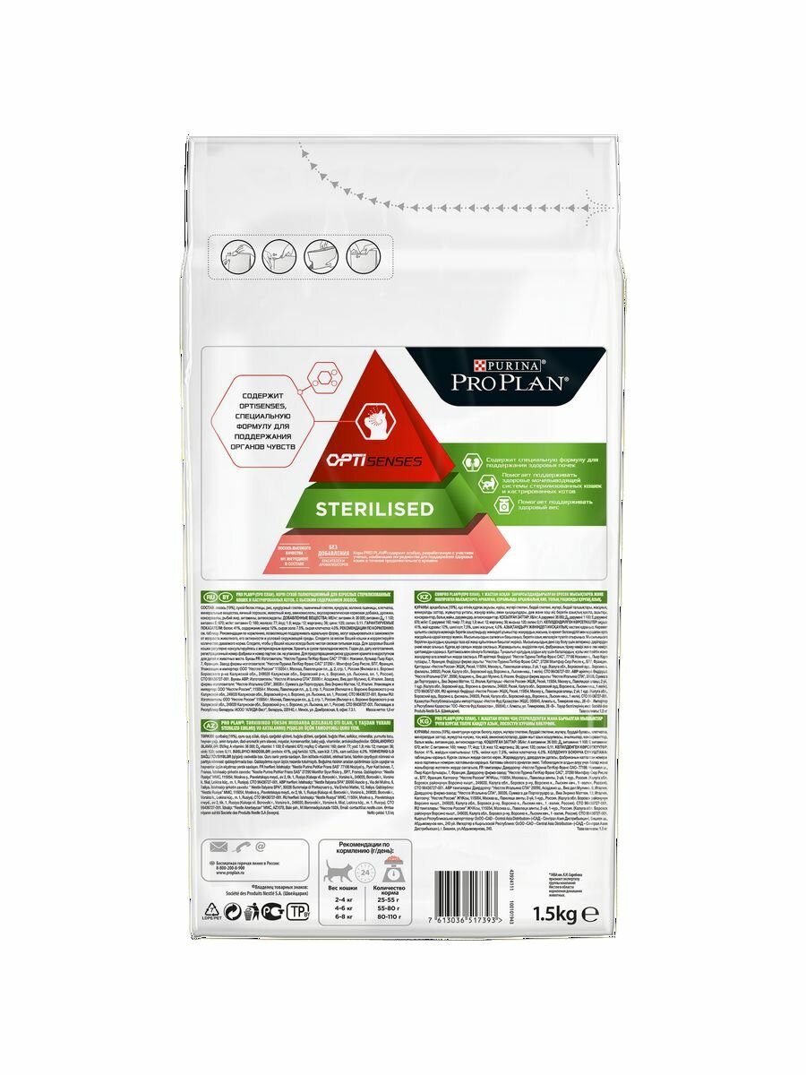 Pro Plan корм для стерилизованных кошек всех пород и возрастов, для поддержания органов чувств 1,5 кг