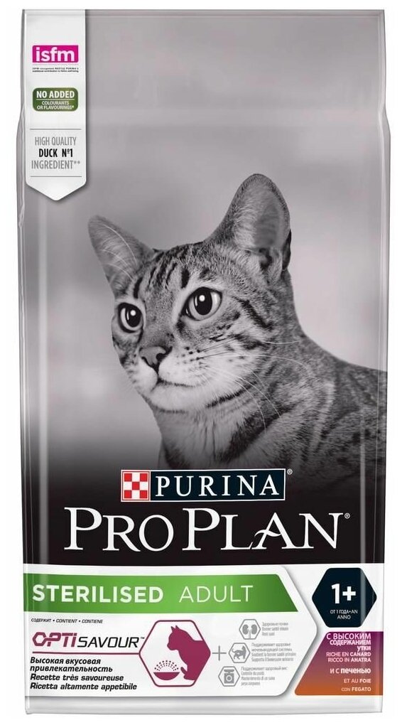 Purina Pro Plan сухой корм для стерилизованных кошек и кастрированных котов c уткой и печенью интересное: